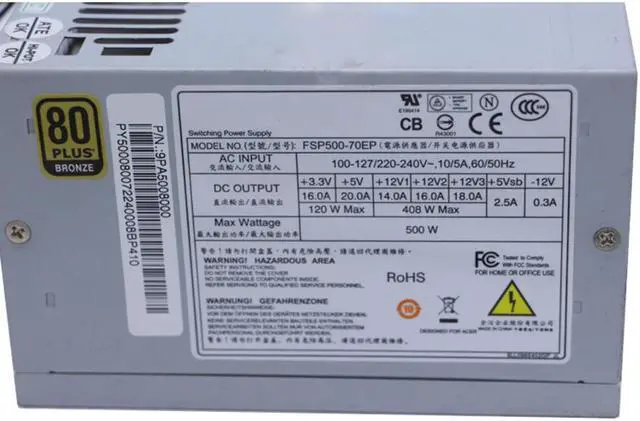 80 PLUS Certification:Other Certification Certification:NONE Origin:CN(Origin) Rating Power:500W Model Number:FSP500-70EP Application:Desktop Warranty:60 days Perfect test before shipment:Yes