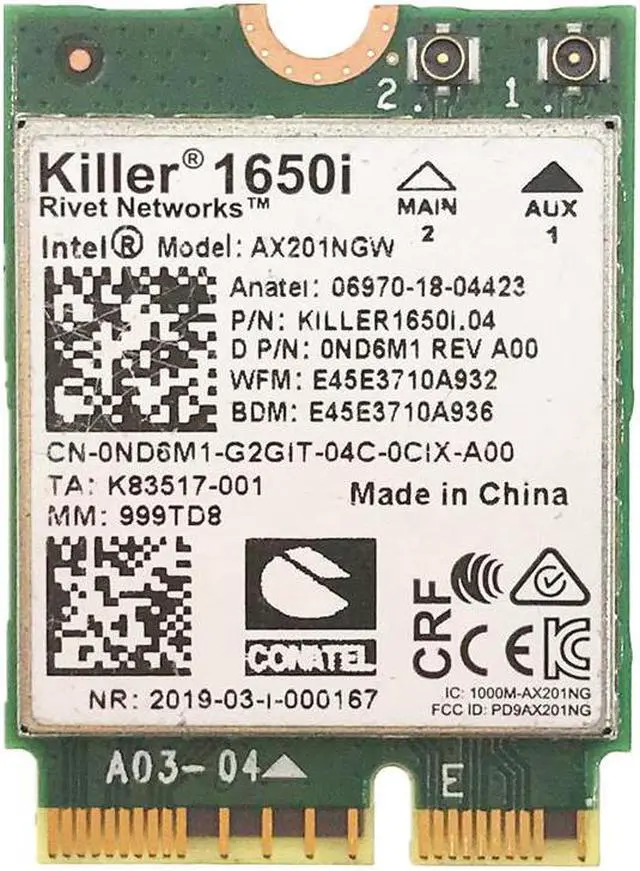 Intel Killer 1650i wireless network card