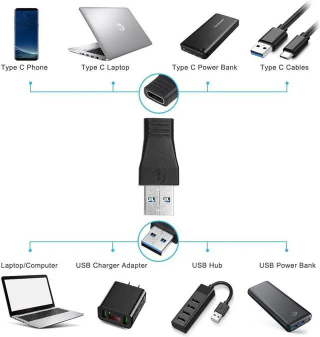 Allows connections to your USB Type-A Laptops or Chargers with USB Type-C cable, USB Type-C Hubs and other USB Type-C devices. Compatible with USB C to Lightning cable, USB C to C cable.