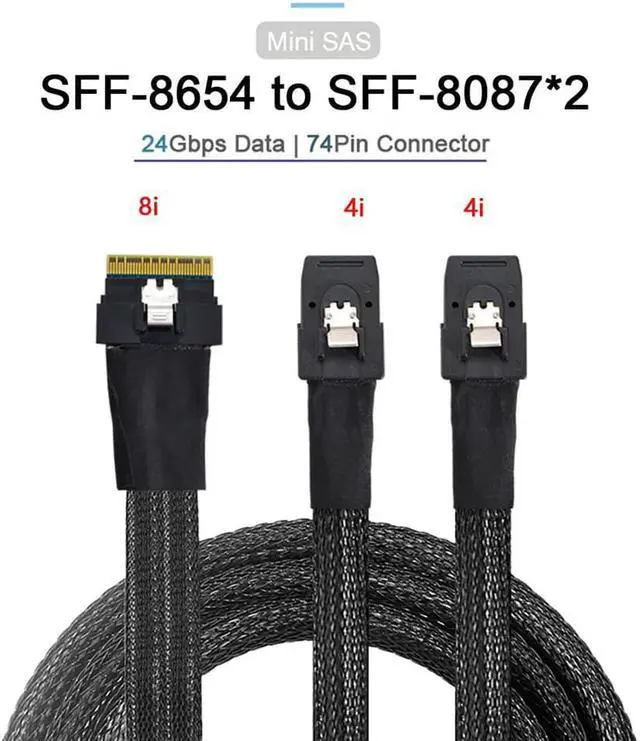 PCI-E Ultraport Slimline SAS Slim 4.0 SFF-8654 8i 74pin to Dual SFF-8087 Mini SAS Cable PCI-Express