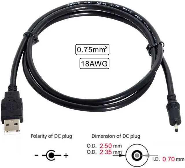 18AWG 0.75mm*2 USB 2.0 A Type Male to DC 2.50mm 2.35mm 0.7mm Power Plug 5V Cable 100cm