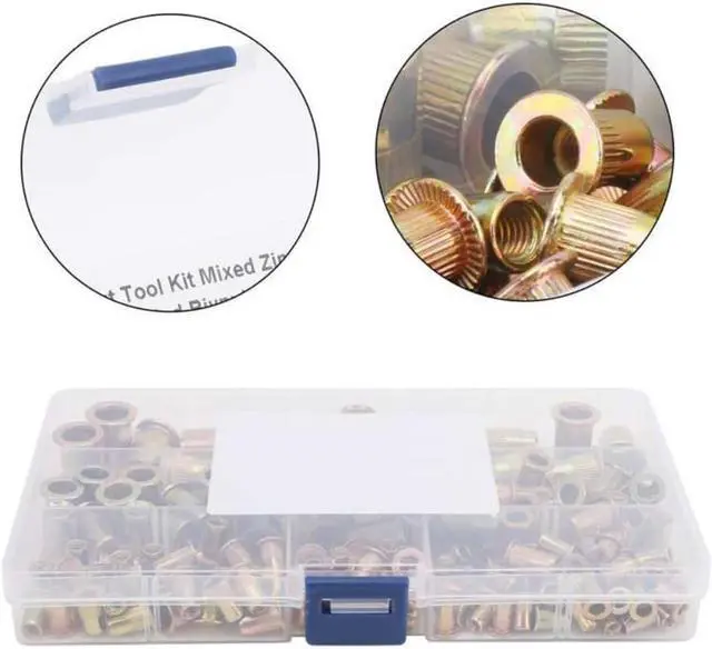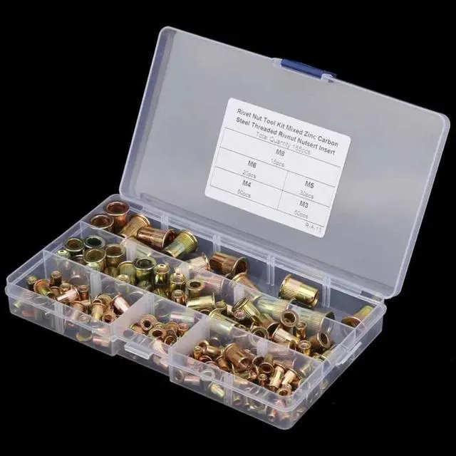 165 Buah Set Mur Sisipan Berulir Kepala Datar Baja Karbon M3 M4 M5 M6 M8 Pengencang Paku Keling Mur Memukau Buta