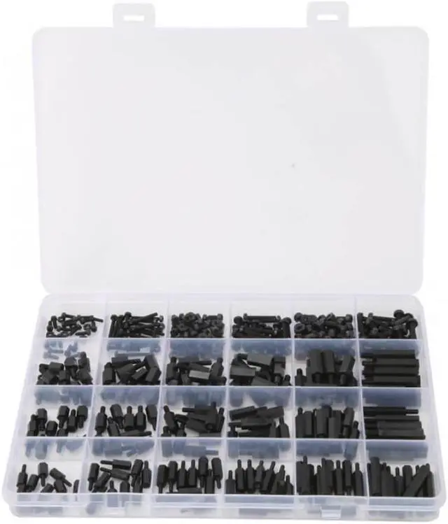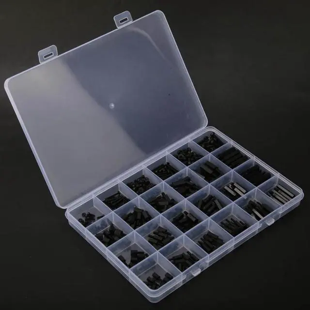 360 buah M2/M2.5/M3 hitam nilon pria-perempuan Hex Standoff Spacer mur sekrup bermacam-macam Kit