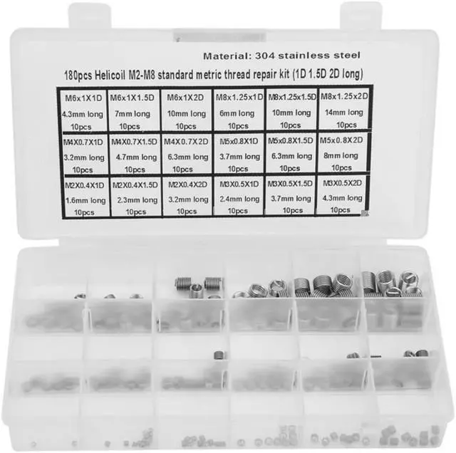 180 buah alat reparasi benang baja tahan karat sisipan berulir kawat M2-M8