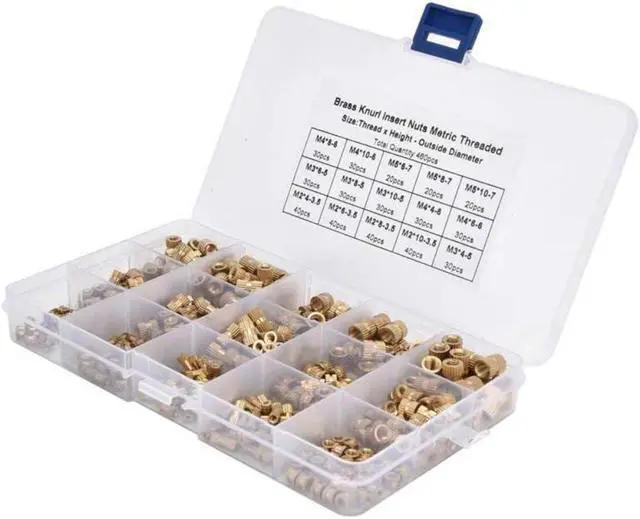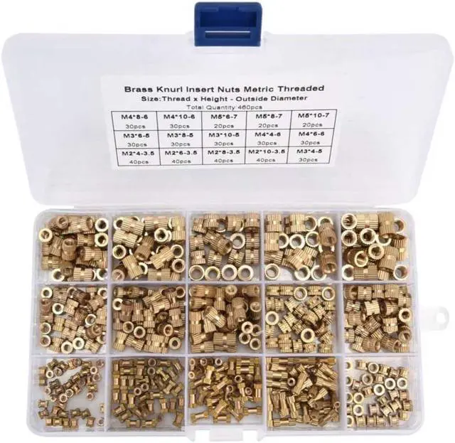 460 buah mur Knurled M2 M3 M4 M5 benang wanita kuningan berulir alat memasukkan berbagai macam Embedment