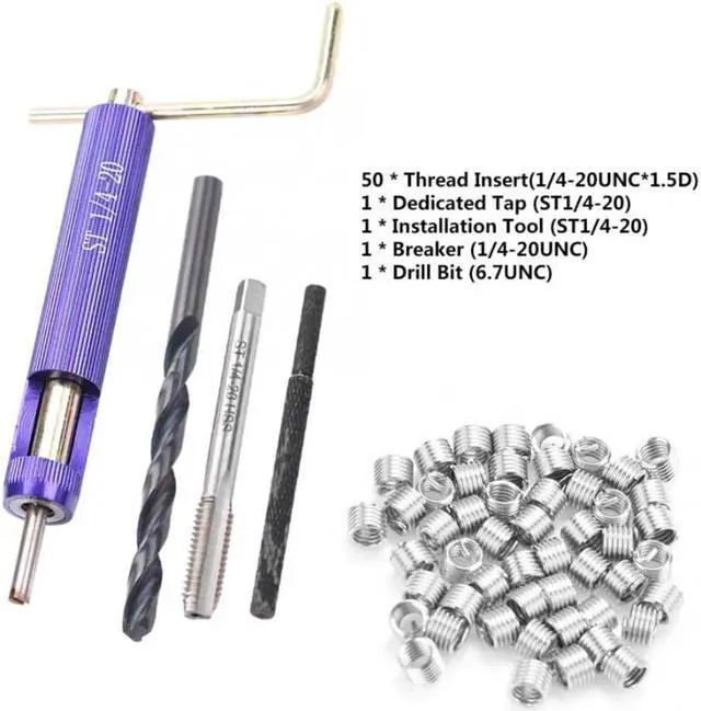 50 buah Kit alat angsuran Set sisipan berulir baja tahan karat 1/4-20UNC * 1, 5D