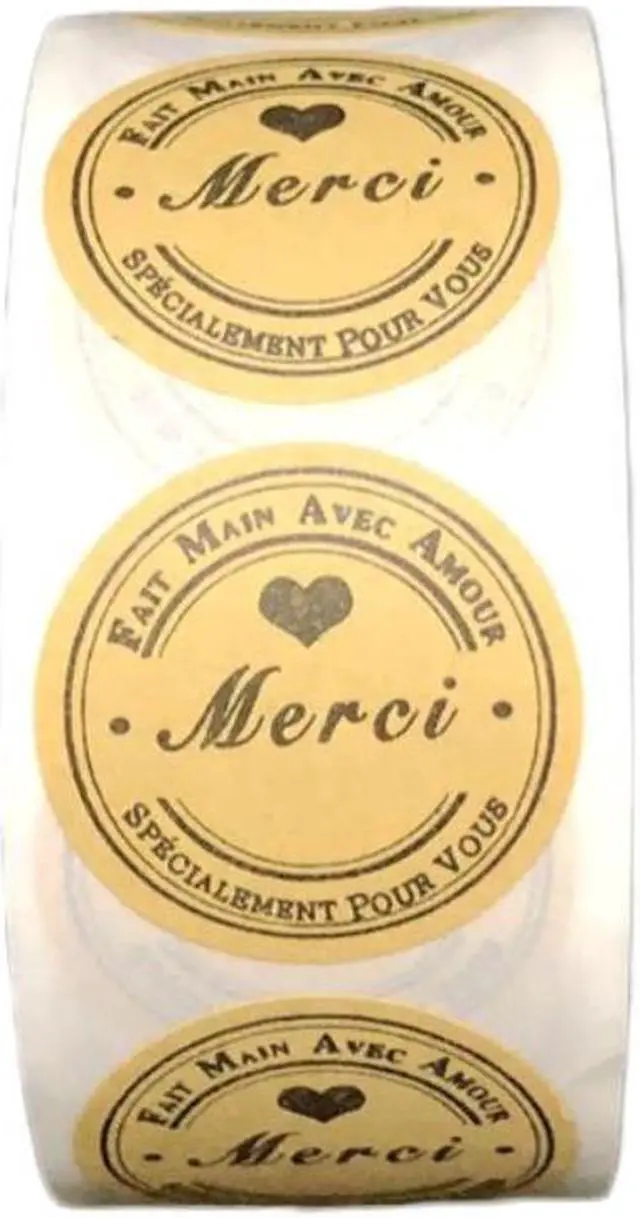 500 Pcs Merci French Thank You Stickers Self Adhesive Kraft Tags Stickers Baking Package Sticker Scrapbooking Stickers