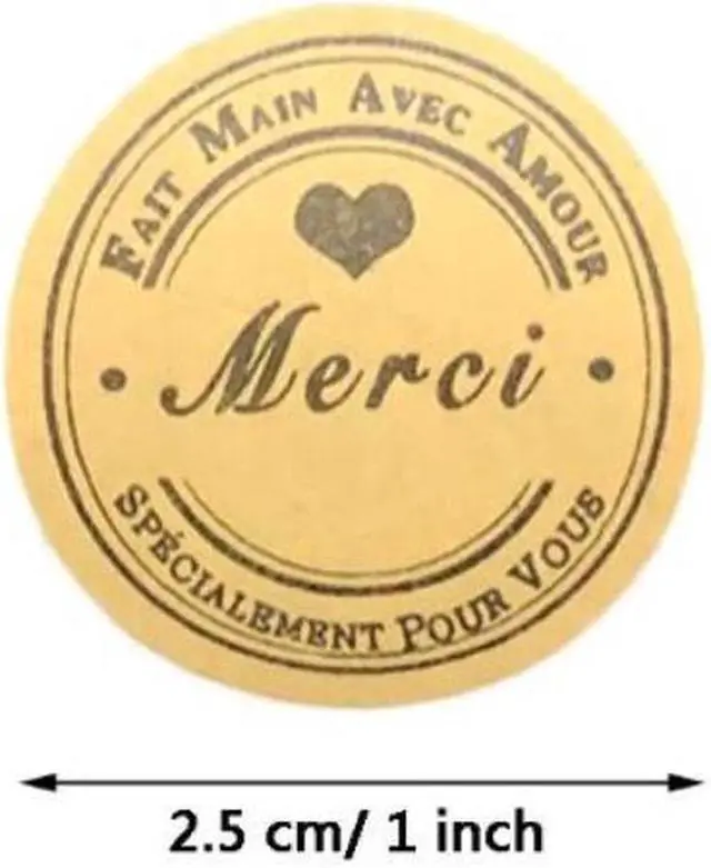 This sticker printed French Thank You "Merci Fait Main Avec Amour" words on it, used to thank customers for their patronage and is a perfect customer return.