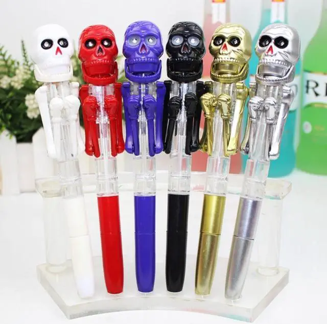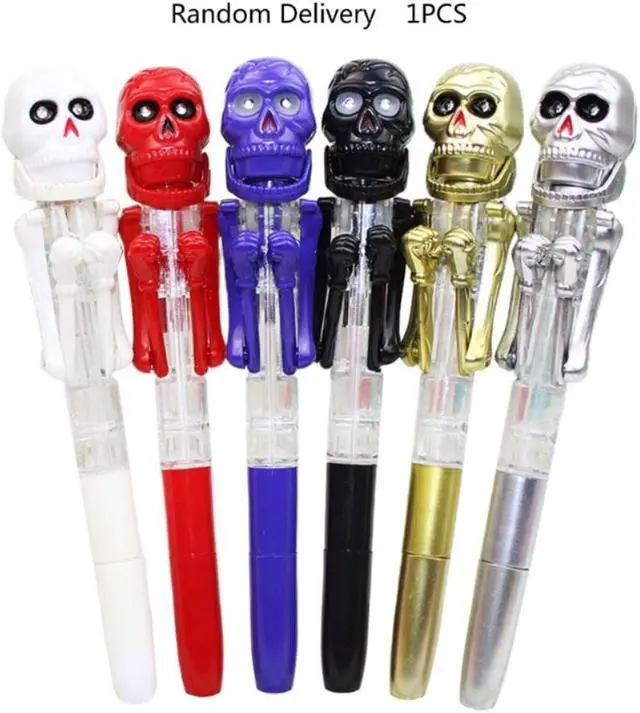 NOVELTY WRITING PEN. This funny balllpoint pens are featuring Halloween skull design, skull eyes with light-up LED (batteries included), perfect for children, boys, girls, students and adults writing, note taking, DIY drawing, DIY graffiti.