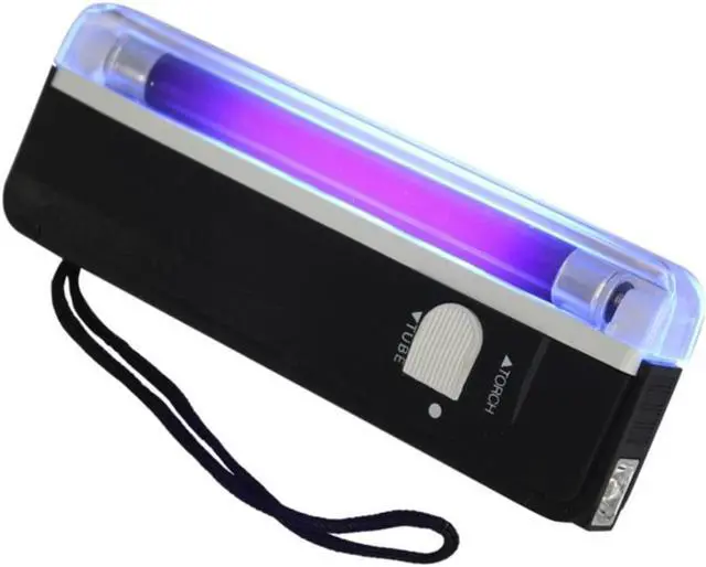 MULTI-PURPOSE. Works great as counterfiets currency detector, camping lamp, handheld flash, emergency light, portable torch, etc. 4 Pcs AA batteries Powered, (Batteries are NOT included!).
