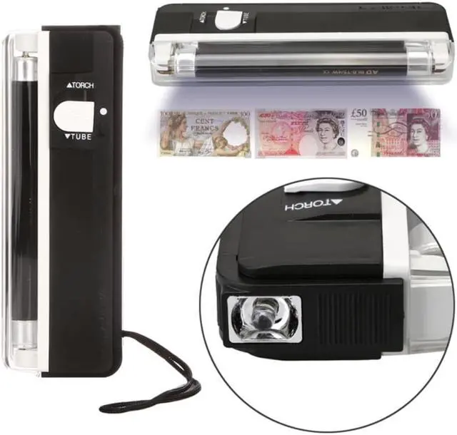 2-in-1 Counterfeits Money Detector with LED Flashlights Fake Money Detector Device Counterfeits Bill Money Detector
