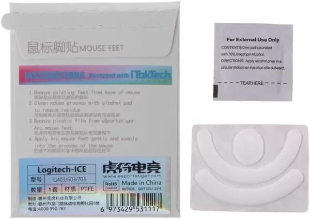 This product is a replacement mouse feet. After removing the mouse foot sticker, clean the bottom shell by the alcohol cotton which is attached in the package, and then paste the mouse feet on.