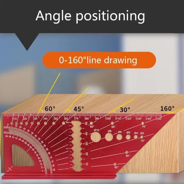 2.All-in-one. Angle Adjusrtable 0°-160°, various size holes, 3-10mm drill fixing holes. Three-dimensional marks, 45°angel and 90°angel limit stop, Dovetail Template, marking gauge for parallel lines, drill gauge, ruler for vertical line and parallel line, T-shaped Scribe, Protractor.