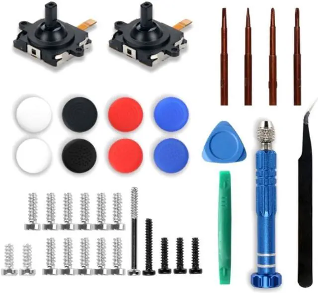 Comes with 2x Analog Joysticks;8x Thumbstick Caps;1x Screwdriver;5x Screws;4x Screwdriver Bits;1x Tweezer;1x Pry Tool;