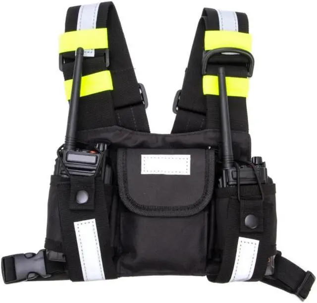 Two Way Walkie Talkie Chest Harness Holder Radio Shoulder Holster Vest Rig Front Pack Pouch Radio Reflective Carry for C