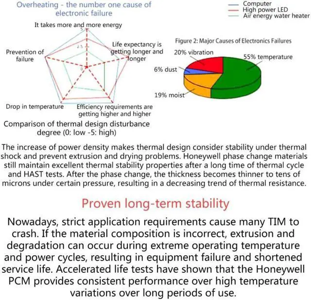 PTM7950 is a proprietary material that provides superior reliability (pass 150C baking 1000 hours, T/C-B 1000 cycles) and maintains low thermal impedance (