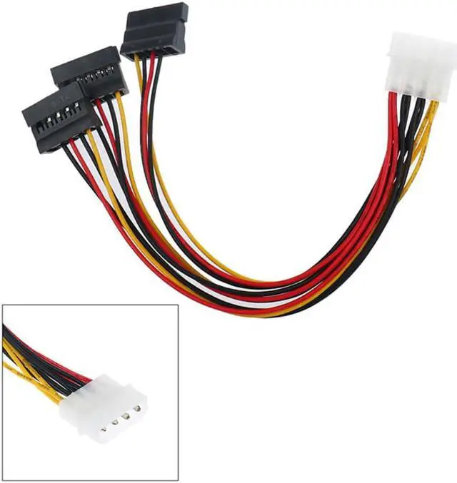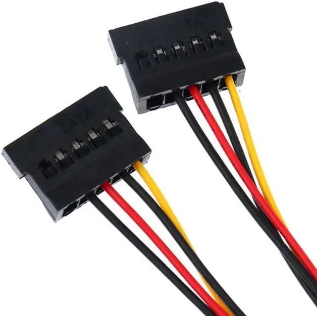 Convert one Standard 4-pins Molex power plug into two female ATA/SATA power cables Expands from one 4pin IDE power connector to two SATA power cable connectors