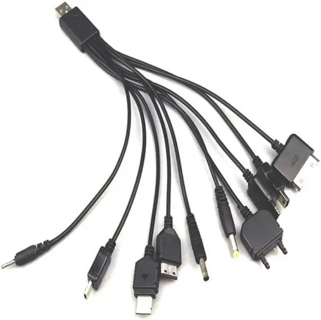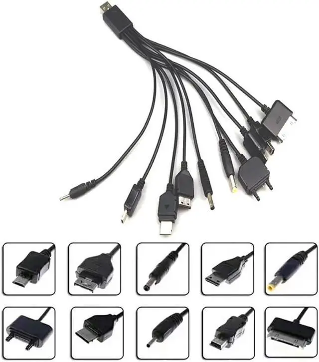 1.With a normal USB 2.0 connector on one end and 10 different connectors on the other, this cable is all you need to charge your all USB powered devices. This 10-in-1 retractable USB cable can be used to charge your Devices with USB charger plug, car charger, travel adapter, or direct from your PC/Laptop USB port