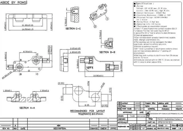 • Kailh Hot-swappable PCB Socket Sip socket Hot Plug CPG151101S11 For Mechanical Keyboard DIY