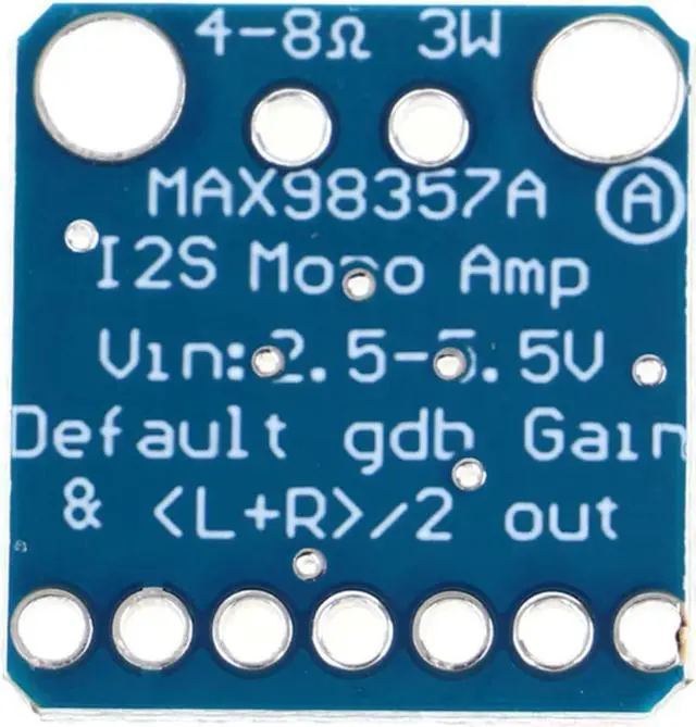 The I2S audio input supports 3.3V and 5V levels. The gain can be set to the following values using the gain input: 3dB, 6dB, 9dB, 12dB and 15dB