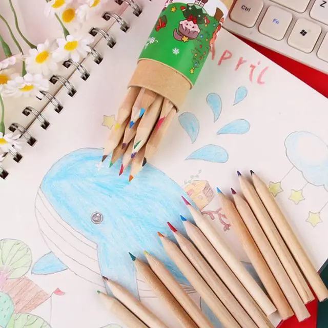 12 Colored Pencils for Children's Stationery Christmas Gift 2022 School Supplies Boxed Wooden Drawing Color Pencil
