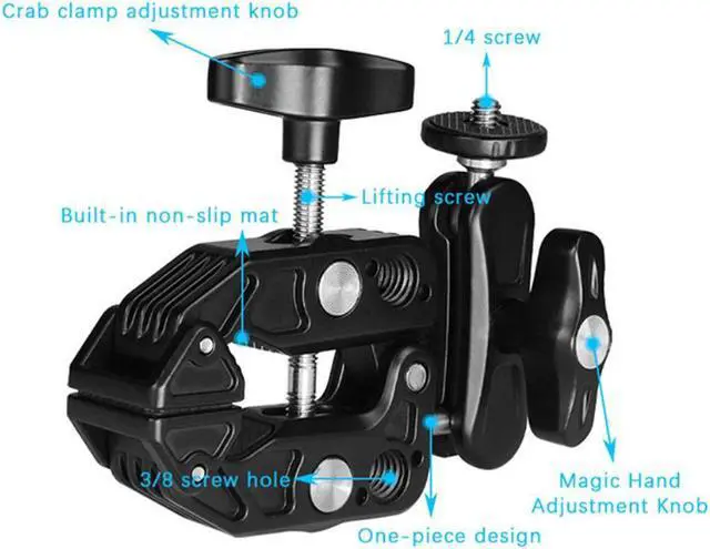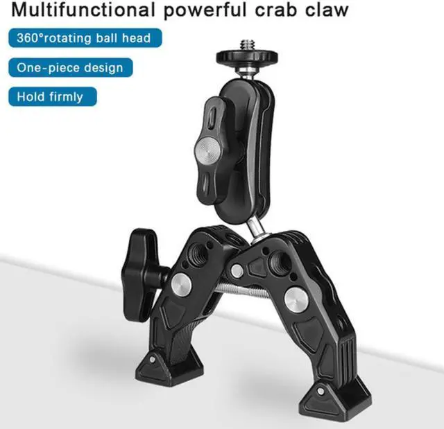 Multifunctional powerful crab clamp, 360-degree rotatable ball head, one-piece design for stable clamping.