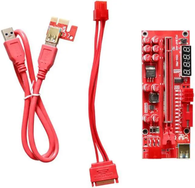 Pgraded version design - PCI-E 1X to 16X V014 PRO version riser card with LED light and temperature probe and USB 3.0 cable, power adapter card with multi-layer shielded cable, will not weaken the signal.