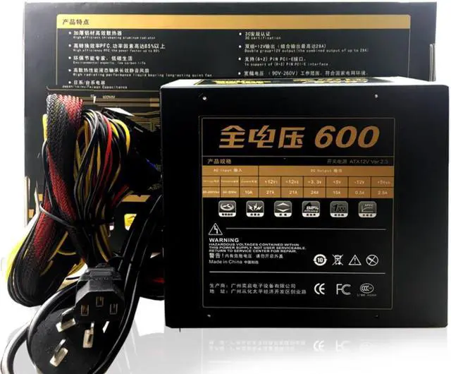 600W Quiet 120mm Fan 20/24pin ATX 12V 4/8-pin PC Power Supply