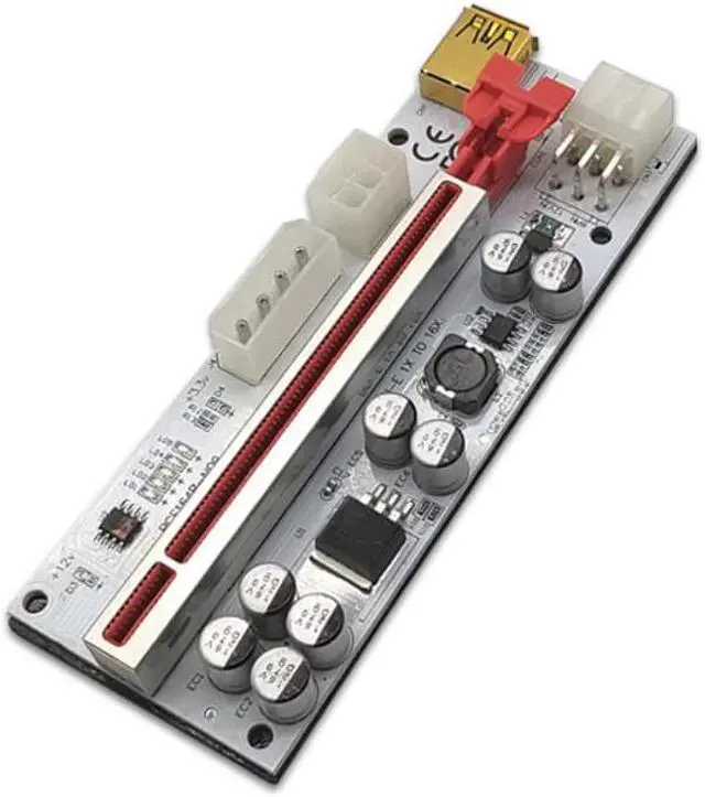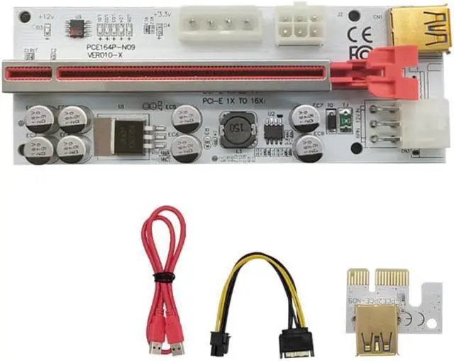 Version 010X riser kits are the est and top of the line solution for setting up GPU mining rigs. 4PIN and Two Graphic card 6PIN interface are optional to power, which provides Graphic card independent power and reduces motherboard burden when using more Graphic cards. LED Display board, 8 Solid Capacitors, 60cm USB 3.0 cable, Suitable for all Window systems, LIN U X and M A C.