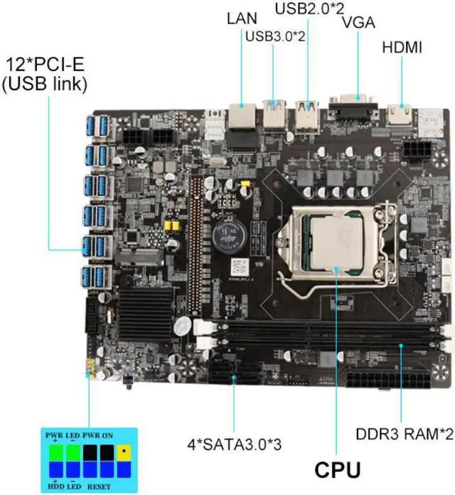 B7512 gpu motherboard B75 Mining Motherboard 12 PCIE To USB Adapter CPU Cooling Fan LGA1155 DDR3 MSATA B75 USB BTC Miner