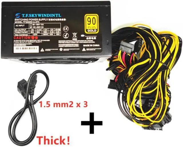 2000W PC Power Supply with EU Power Cable ATX Pc 2000W PSU Support 8 Graphics Card Ethereum ETH BTC Mining Antminer Psu