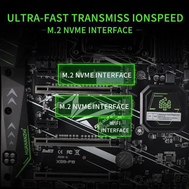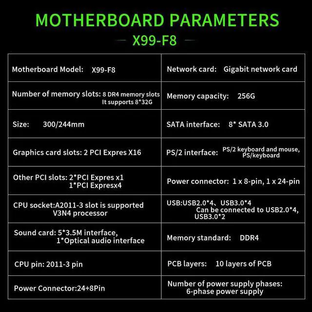 TFDP X99 F8 motherboard slot LGA2011-3 USB3.0 NVME M.2 SSD support DDR4 REG ECC memory and Xeon E5 V3 V4 processor