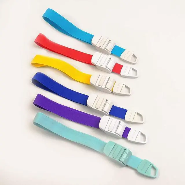 Open the small package, take out the tourniquet, gently press the tourniquet to lock the raft button on the valve, the valve button will pop up automatically, pull out the elastic band with a length of about 20-35cm, depending on the thickness of the patient's upper arm, and then insert the valve button back Lock the valve so that a 7-11cm tourniquet ring is formed. Put the ring into the upper arm of the patient's infusion (blood), and tighten the elastic band until it conforms to the normal infusion state. Because the patient's vein is compressed, the blood is blocked when the blood is returned, and the vein is dilated. The infusion (blood) needle can be inserted at the dilated vein. After the routine observation of the infusion (blood) is completed, the valve on the tourniquet locking valve can be lightly pressed. Raft buckle, the valve buckle pops up automatically, loosen the tourniquet and take it out. It can be taken out after conventional