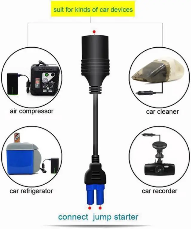 - Convenient and easy to use. Simply connect the DC port to your portable car jump starter or booster and the other port to your 12-volt devices.