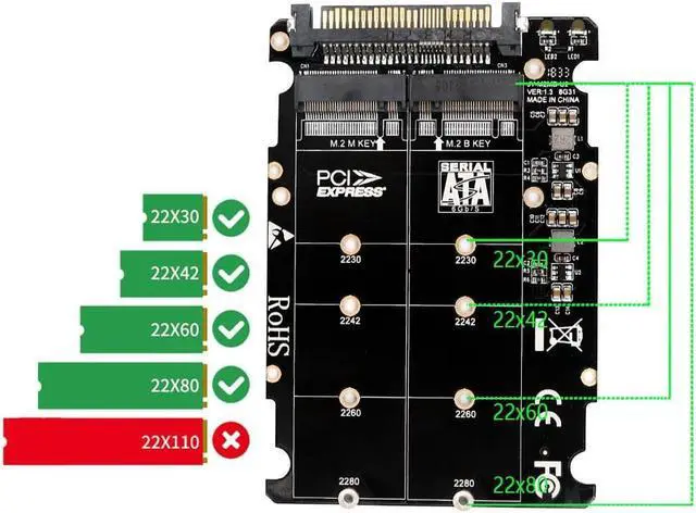 M.2(Key B) to U.2 adapter for M.2 SATA SSD.