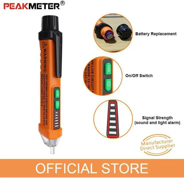 PEAKMETER Non-Contact Tester Pen PM8908C 12-1000V AC Voltage Detectors Tester Meter Volt Current Electric Test Pencil