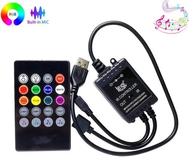 RGB Music Controller USB 5V 20 Key IR Remote Control Built-In MIC Sound Sensor Dimmer For 2835 3528 5050 SMD COB LED Strip Light