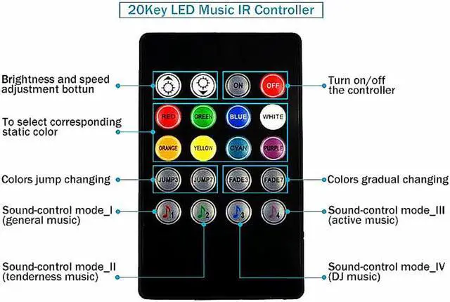 USB 20Key infrared Music LED controller adopts the advanced micro control unit