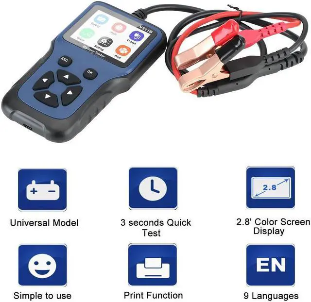 This detector, accurate data, quick detection, suitable for a variety of 12.0V batteries, 2.8 inch color display. It is easy to use and has printing function. Nine kinds of voice can be selected. It is widely used.