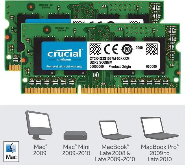 Crucial 8GB Kit (4GBx2) DDR3/DDR3L 1066 MT/s (PC3-8500) SODIMM 204-Pin Memory For Mac - CT2K4G3S1067M