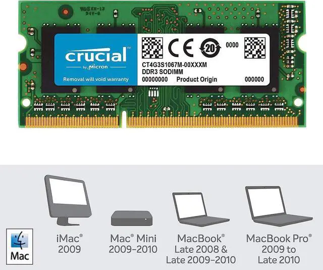• Crucial 4GB DDR3/DDR3L 1066 MT/s (PC3-8500) SODIMM 204-Pin Memory For Mac - CT4G3S1067M