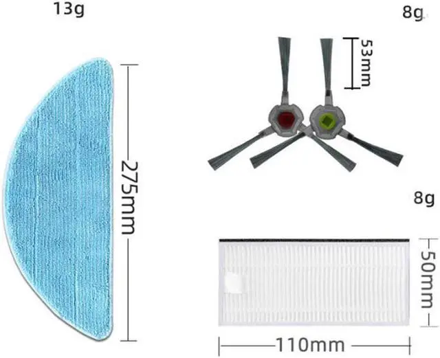 Types (Optional): 3 pairs of side brushes + 5 filters + 5 rags