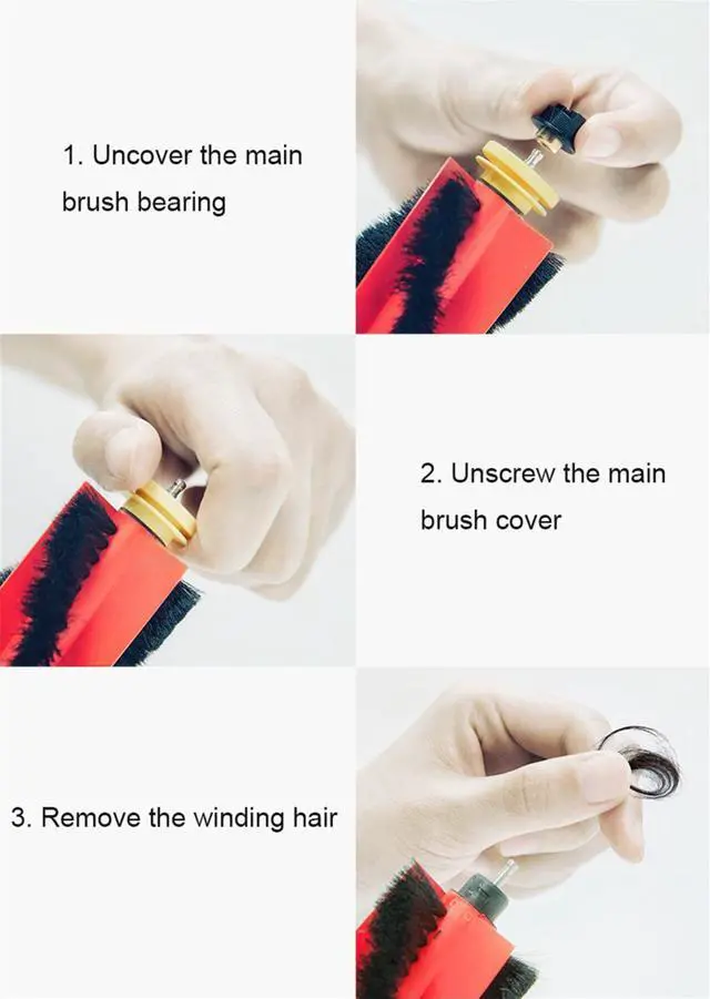 Easily by only 3 steps, you are able to clean up hairy dirt twined on the main brush especially at 2 ends