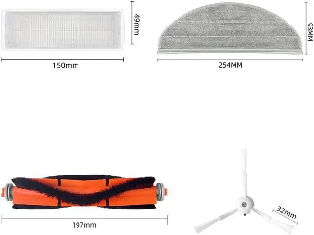 2x Main Brush+8x Side Brush+8x Filter +6x Mop