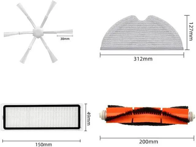 x Main Brushes + 4x Side Brushes + 3x Filter Screens/Each + 4x Mops