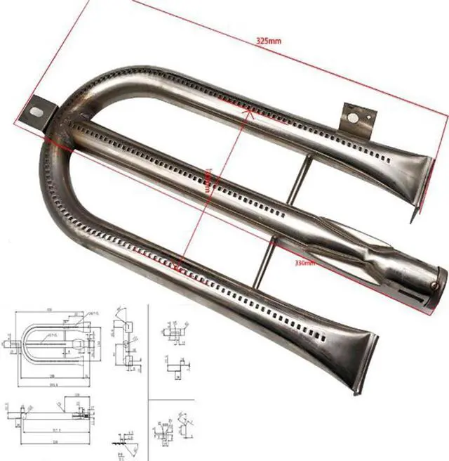 Outdoor BBQ Heating Furnace Tube U-shaped Barbecue Stove Gas Burner 304 Stainless Steel Stove End Gas Appliance Parts