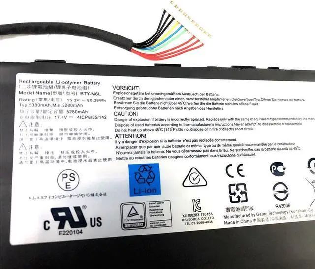 15.2V 80.25WH/5380mAh BTY-M6L Laptop For MSI GS65 8RF 8RE PS42 PS63 MS-16Q3 MS-16Q3
