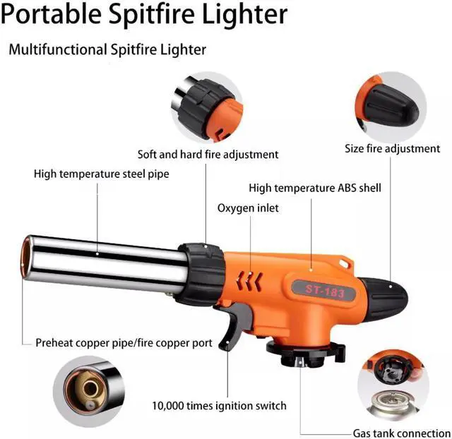 The jet flame lighter uses sturdy copper turbo nozzle, can create a continuous single flame up to 2.8 inches with a temperature of 2800°F. We have also added 2 cooling hole to allow it to cool faster and recover quickly to ensure long-term use. to make you shop with confidence. If you have any questions or need any help, please contact us. We are always here for you~!