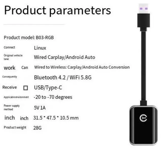 DIXSG B03-RGB Wireless CarPlay Adapter