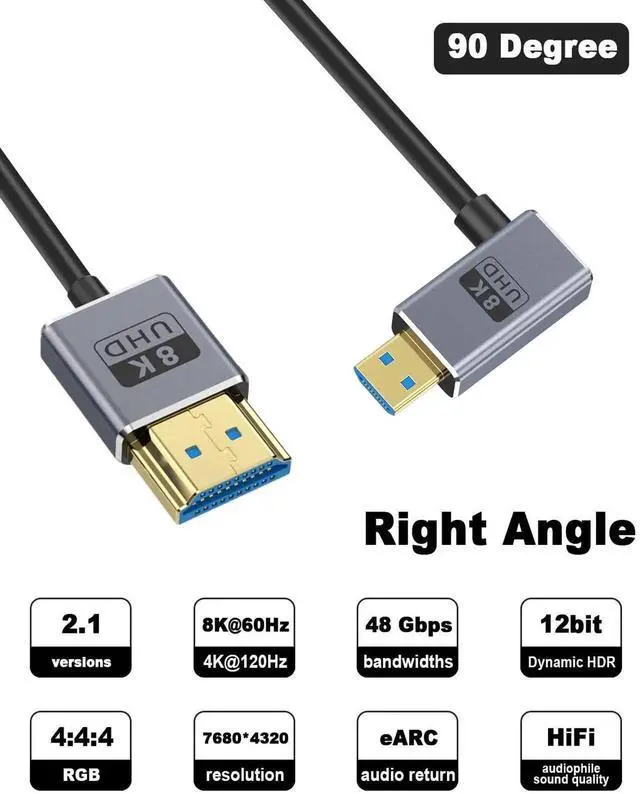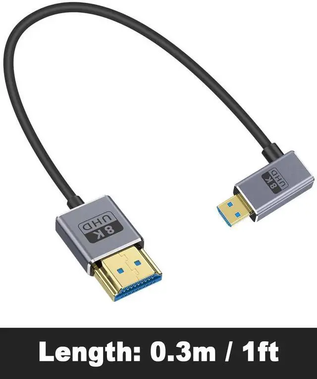 90 Degree HDMI to Micro HDMI Cable: Specifically designed for connecting cameras or digital single-lens reflex (DSLR) cameras to portable monitors, this cable is ideal for tight spaces and prevents damage caused by long-term bending. The flexible and slim design is perfect for compact spaces.